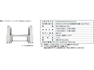 吹出し風速:約0.5m/s フィルタ:FERENA、前処理フィルタ(ELE-PRE+プレフィルタ) 清浄度:ISOクラス1 清浄空間:1800mm以内(テーブル有)/1400mm(テーブル無) 電源:AC100V 50/60Hz 重量:206kg興研