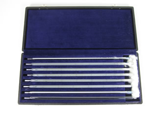 標準温度計は二重管(透明ガラス外管の中に、水銀の入ったガラス毛細管と目盛板が封じられているもの)と棒状(ガラス管の中に水銀を封入し、目盛は表面に刻まれているもの)の2種類から選択可能です。各事業所における毎日の計量管理業務にご使用ください。