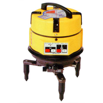 使用レーザー: 可視光半導体レーザー ・ライン: 635nm 5個 ・下部: 645nm 1個 出力: 各≦1mW以下 安全基準/クラス2 自動補正範囲: ±4°/補正外はレーザー消灯 使用距離範囲: 半径10m 受光器使用時は最長50m スポット径: φ2.5mm以下/1m先 線径: 3mm以下/10m先 機構: 回転微調整付、シフティング機構付、防塵、防滴 精度: 10mで±1mm以内 アラーム機構: ・制御範囲外: ピピピピピ ピピピピピの繰り返し(±4°以上はレーザー消灯) ・電池残量が6.0V以下: ピピ ピピの繰り返し ・電池残量が5.5V以下: 自動的に電源OFF ・本機の異常警告音: ピーの連続音(メカ的トラブル又は異常状態) 本体重量: 3.5kg 本体寸法: 270(H)×175(W)mm(最大突起部) 電源: AC: 100V DC: 着脱式バッテリーニッショー機器