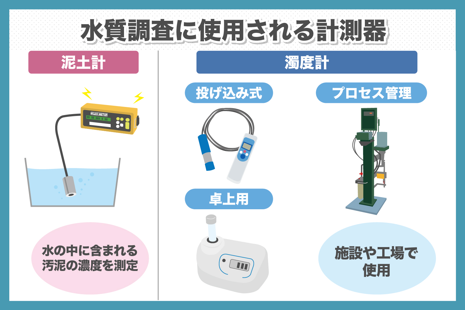 濁度計は、水の濁り具合を測定するための機器です。濁度計には下記の3つのタイプがあります。